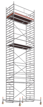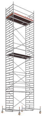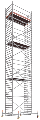 Lešení nabízí pracovní výšku od 3,5 m do 13,6 m a typický půdorys plošiny 1,5 × 2,85 m. Systém splňuje zatížení až 2 kN/m² dle normy ČSN EN 1004 (73 8112), zajišťující stabilitu i při intenzivním použití.