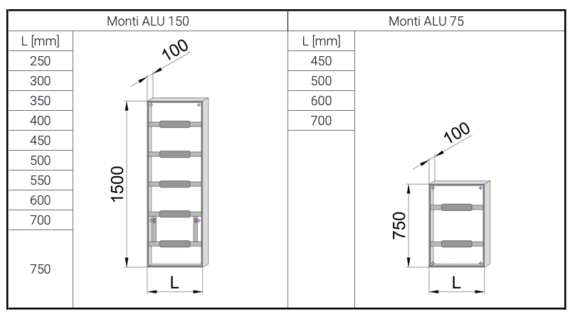Základní prvkem systému Monti ALU jsou panely tvořené rámem z vysokopevnostních hliníkových slitin osazeným vodovzdornou překližkou. Nízká hmotnost (25 kg) největšího panelu o rozměrech 1,5 x 0,75 m umožňuje ruční manipulaci bez nutnosti využít těžké techniky. S bedněním Monti ALU lze bednit konstrukce až do výšky 4,5 m.