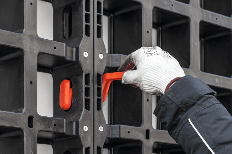 Základním prvkem systému PERI DUO jsou panely z odolného technopolymeru, který spojuje nízkou hmotnost, pevnost a dlouhou životnost. Největší panel váží pouze 24,9 kg, což umožňuje pohodlnou montáž ručně, ale v případě potřeby je možné využít i strojní manipulaci. S bedněním lze provádět betonáže stěn až do výšky 5,4 m.